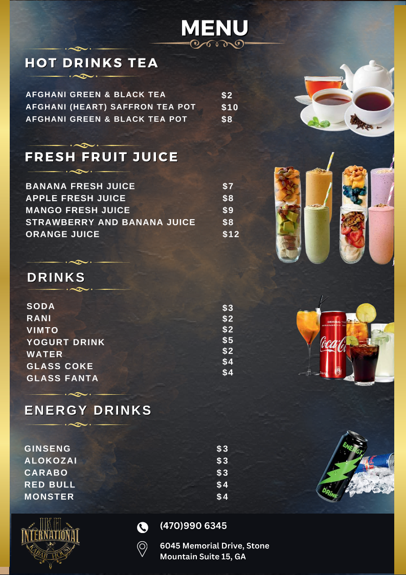 Overall, International Kabab House offers a well-rounded menu that combines comfort, tradition, and bold flavors, making it a great spot for both casual dining and family meals.